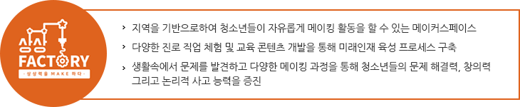 û¼Ò³â¸ÞÀÌÄ¿µéÀÌ ÀڽŵéÀÇ ¾ÆÀ̵ð¾î¿Í ¼³°è¸¦ Á¦ÀÛ․±¸ÇöÇÒ ¼öÀÖµµ·Ï ÇÊ¿äÇÑ Àåºñ,°ø±¸,ÀηÂÀ» °®Ãá °øµ¿ÀÛ¾÷½ÇÀÌÀÚ, Á¦ÀÛ․âÀÛȰµ¿¿¡ °ü½ÉÀִ û¼Ò³âÀÌ¸é ´©±¸³ª ÀÚÀ¯·Ó°Ô ¸ðÀϼö ÀÖ´Â Ä¿¹Â´ÏƼ °ø°£ÀÔ´Ï´Ù.