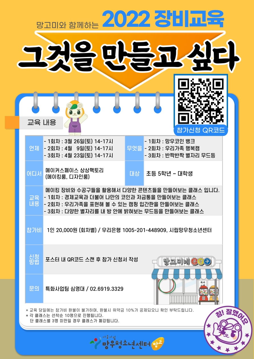 ½Ã¸³¸Á¿ìû¼Ò³â¼¾ÅÍ¿¡¼ ÁøÇàÇÏ´Â ¸ÞÀÌÄ¿ ±³À° Áß Àåºñ¸¦ Ȱ¿ëÇØ¼ ´Ù¾çÇÑ ÄÜÅÙÃ÷µéÀ» ¸¸µé¾îº¸´Â Ŭ·¡½ºÀÔ´Ï´Ù :)