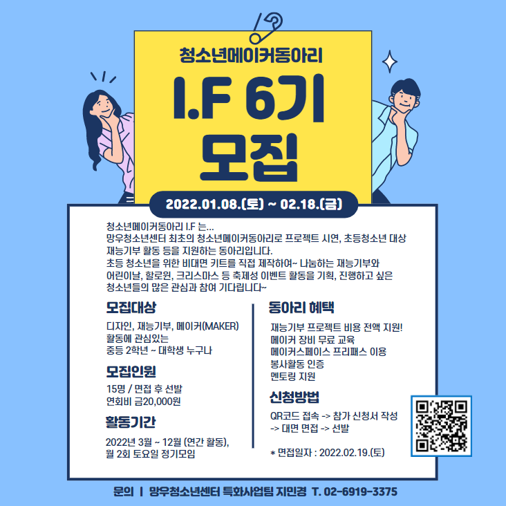 û¼Ò³â¸ÞÀÌÄ¿µ¿¾Æ¸® I.F 6±â Âü°¡ÀÚ¸¦ ¸ðÁýÇÕ´Ï´Ù~ µðÀÚÀÎ, Àç´É±âºÎ, ¸ÞÀÌÄ¿(MAKER) Ȱµ¿¿¡ °ü½ÉÀִ û¼Ò³âµéÀÇ~ ¸¹Àº °ü½É°ú Âü¿©~±â´Ù¸³´Ï´Ù~