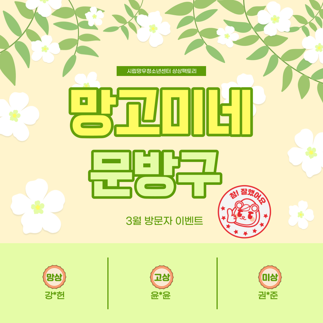 ¿À´ÃÀº 3¿ù ¹æ¹®ÀÚ À̺¥Æ® Ãß÷ °á°ú¸¦ ¹ßÇ¥ÇÏ´Â ³¯ÀÌ¿¡¿ä!