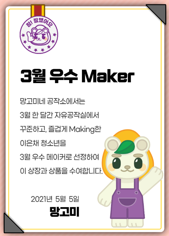 ¾È³çÇϼ¼¿ä~ ¿À´ÃÀº ¿ù°£ ¸ÞÀÌÄ¿ ¼±Á¤À» ¹ßÇ¥Çϵµ·Ï ÇϰڽÀ´Ï´Ù~ 3¿ù, 4¿ù ¿ù°£ ¸ÞÀÌÄ¿·Î ¼±Á¤µÈ Ä£±¸µéÀº °³º° ¿¬¶ô µå¸± ¿¹Á¤ÀÌ¿À´Ï, 2Ãþ ƯȻç¾÷ÆÀ »ç¹«½Ç¿¡¼ »óǰÀ» ¼ö·ÉÇØ°¡¼¼¿ä~ ^^ °¨»çÇÕ´Ï´Ù