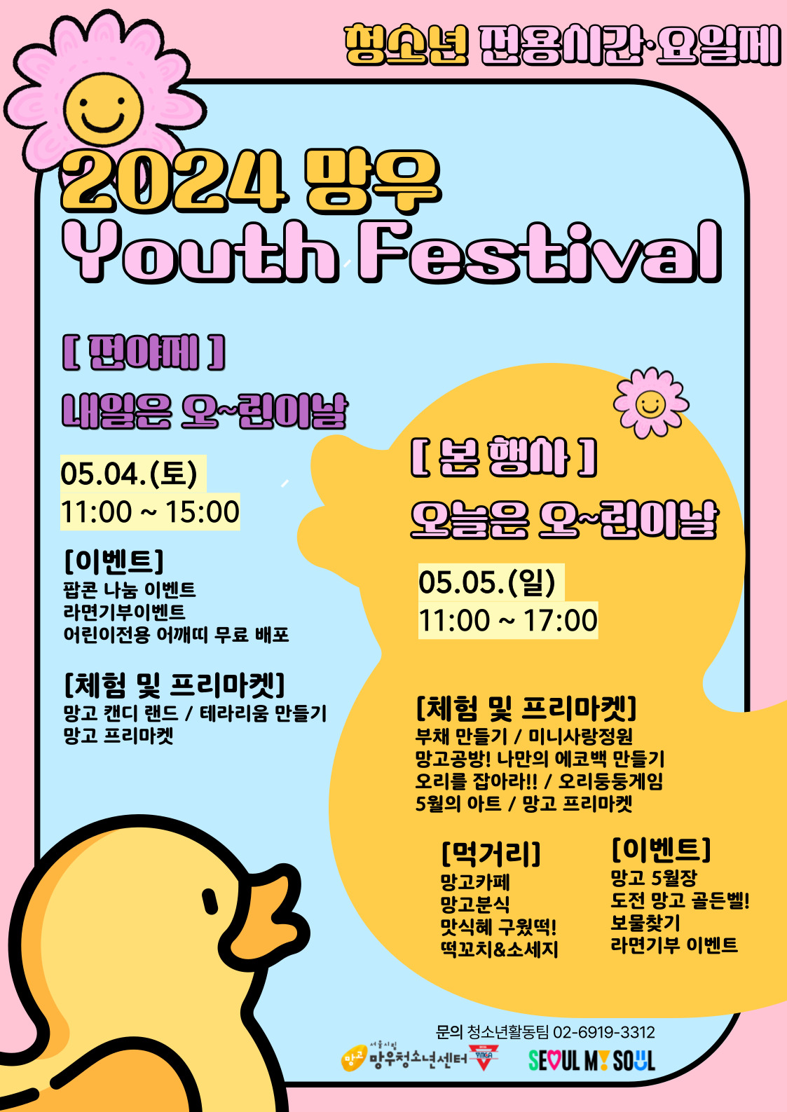 📣2024 û¼Ò³â Àü¿ë ¿äÀϽð£Á¦ 5¿ùÀÇ ¸Á¿ì Youth Festival ¿À´ÃÀº ¿À~¸°À̳¯¡¯📣 👉¸Á¿ìû¼Ò³â¼¾ÅÍ¿¡¼ 5¿ù 4ÀÏ Åä¿äÀÏ ~ 5¿ù 5ÀÏ ÀÏ¿äÀÏ ¾î¸°À̳¯ ÃàÁ¦¸¦ °³ÃÖÇÕ´Ï´Ù. À̹ø ¸Á¿ì Youth FestivalÀº 4ÀÏ Àü¾ßÁ¦¸¦ ½ÃÀÛÀ¸·Î 5ÀÏ ¾î¸°À̳¯ ÃàÁ¦ ¾çÀÏ ÁøÇàµÇ¸ç ´Ù¾çÇÑ Ã¼Çè ºÎ½º¿Í ¸Ô°Å¸®ºÎ½º, À̺¥Æ®°¡ ÁøÇàµÉ ¿¹Á¤ÀÌ¿À´Ï ¸¹Àº û¼Ò³â ¹× Áö¿ªÁֹΠºÐµéÀÇ Âü¿© ¹Ù¶ø´Ï´Ù!!