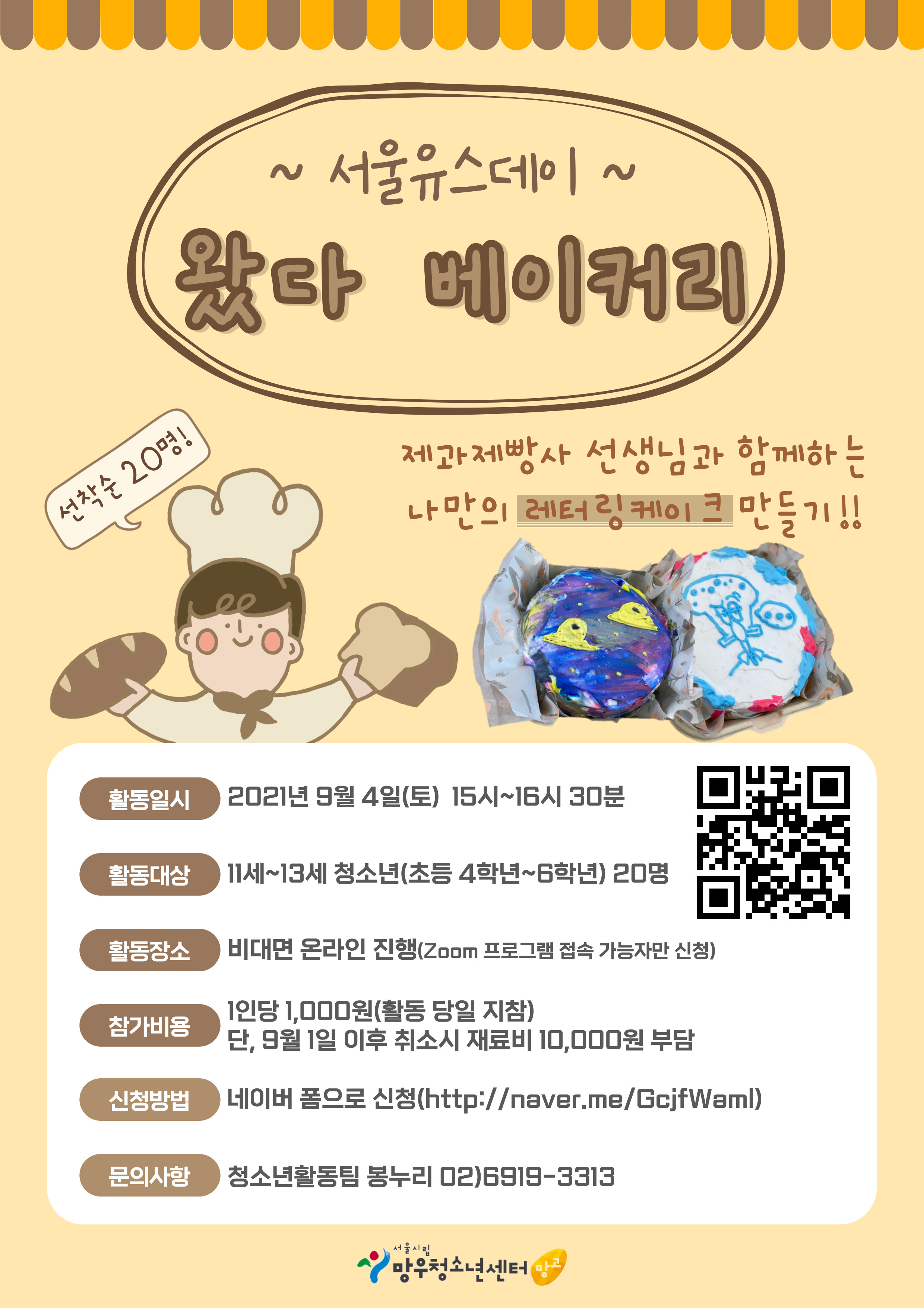 Á¦°úÁ¦»§»ç ¼±»ý´Ô°ú ÇÔ²² ³ª¸¸ÀÇ ·¹Å͸µ ÄÉÀÌÅ©¸¦ ¸¸µé¾î º¼ ¼ö ÀÖ´Â '¿Ô´Ù º£ÀÌÄ¿¸®' ÇÁ·Î±×·¥¿¡ Âü°¡ÇÒ Ã»¼Ò³âÀ» ¸ðÁýÇÕ´Ï´Ù!
