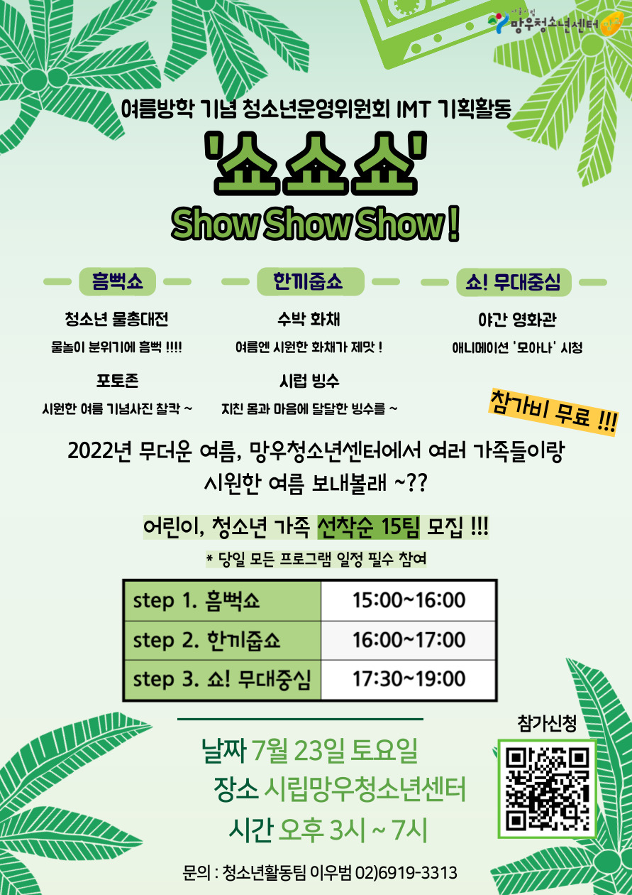 ¿©¸§¹æÇÐÀ» ±â³äÇÏ¿© ½Ã¸³¸Á¿ìû¼Ò³â¼¾ÅÍ ¼Ò¼Ó û¼Ò³â¿î¿µÀ§¿øÈ¸ IMT À§¿øµéÀÌ Á÷Á¢ ±âȹÇÑ Áß¶û±¸ ¹× Àα٠Áö¿ª û¼Ò³â, °¡Á·µéÀ» À§ÇÑ ½Ã¿øÇÑ ¿©¸§ º¸³»º¸±â ÇÁ·ÎÁ§Æ® !! 😎