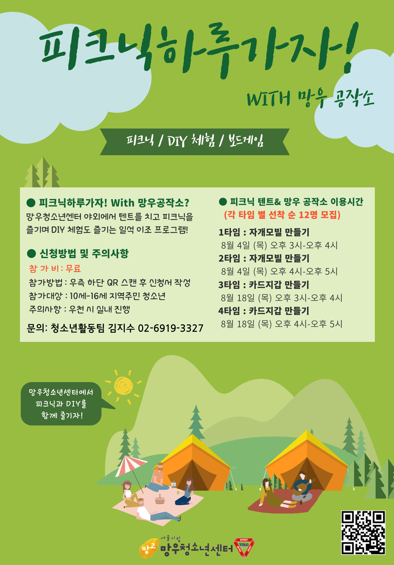 ¿©¸§¹æÇÐÀ» ¸Â¾Æ ÇÇÅ©´Ð°ú °íÄ÷¸®Æ¼ DIY¸¦ ¸Á¿ìû¼Ò³â¼¾ÅÍ¿¡¼ Áñ±âÀÚ!