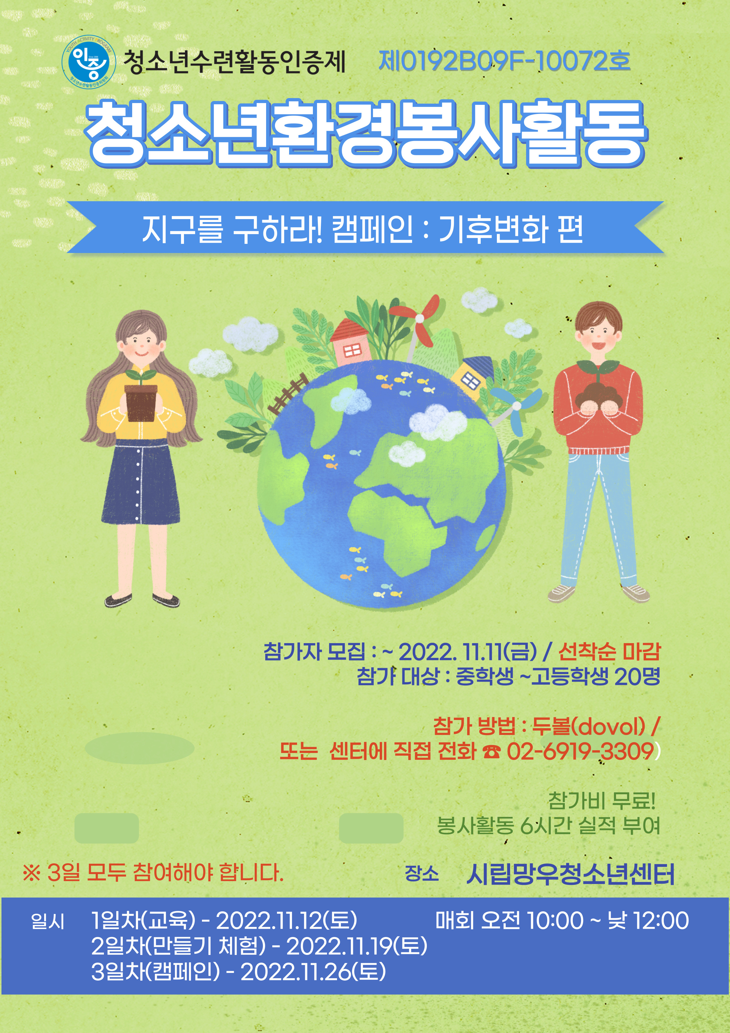 [û¼Ò³âÀÚ¿øºÀ»çȰµ¿] 2022³â û¼Ò³âȯ°æºÀ»çȰµ¿ 'Áö±¸¸¦ ±¸Ç϶ó! Ä·ÆäÀÎ' - ±âÈĺ¯È Æí Âü°¡ÀÚ ¸ðÁý