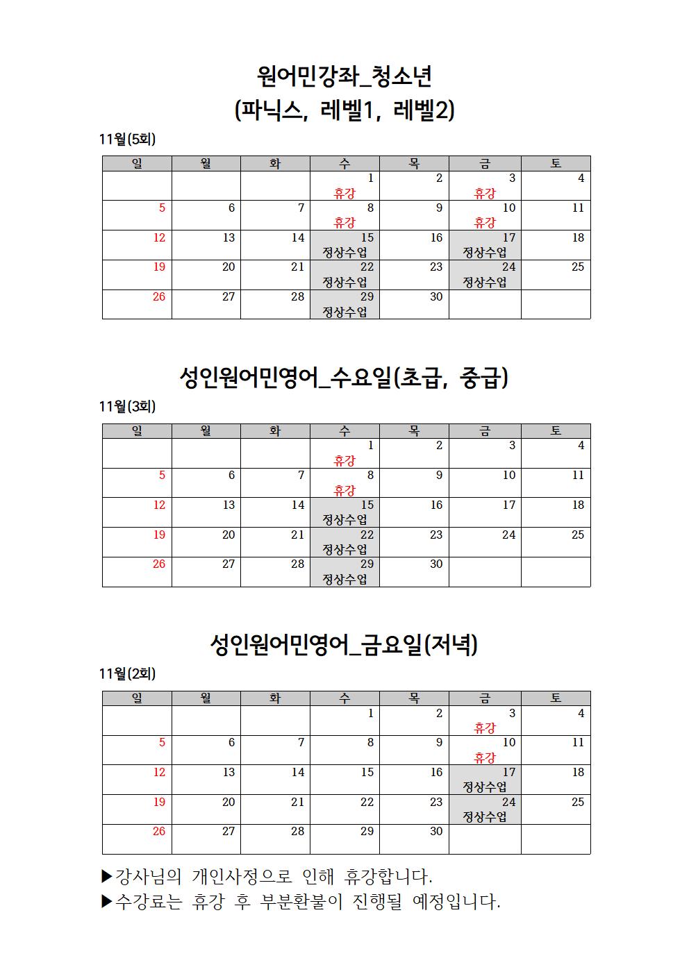 [±³À°¹®È]¿ø¾î¹Î¿µ¾î 11¿ù ÈÞ°ÀÏÁ¤ ¾È³»