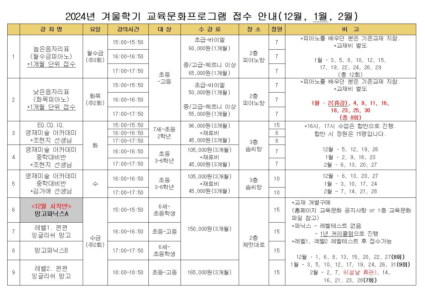 [±³À°¹®È]1¿ù ÇÁ·Î±×·¥ ¾È³»