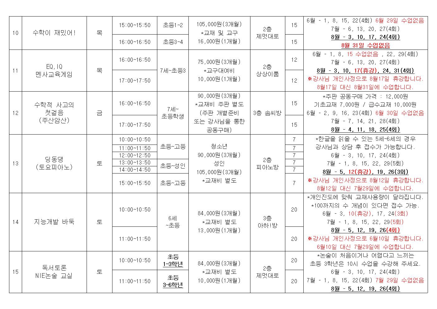8¿ù 1ÀÏ ¼öÁ¤³»¿ë <EQ,IQ ¸à»ç±³À°°ÔÀÓ> ÈÞ°ÀÏÁ¤ÀÌ º¯°æµÇ¾ú½À´Ï´Ù. 8¿ù 17ÀÏ ÈÞ° ÈÄ 8¿ù 31ÀÏ Á¤»ó¼ö¾÷À¸·Î ÁøÇàµË´Ï´Ù. ¼ö°¿¡ Âü°í ºÎʵ右´Ï´Ù. °¨»çÇÕ´Ï´Ù.