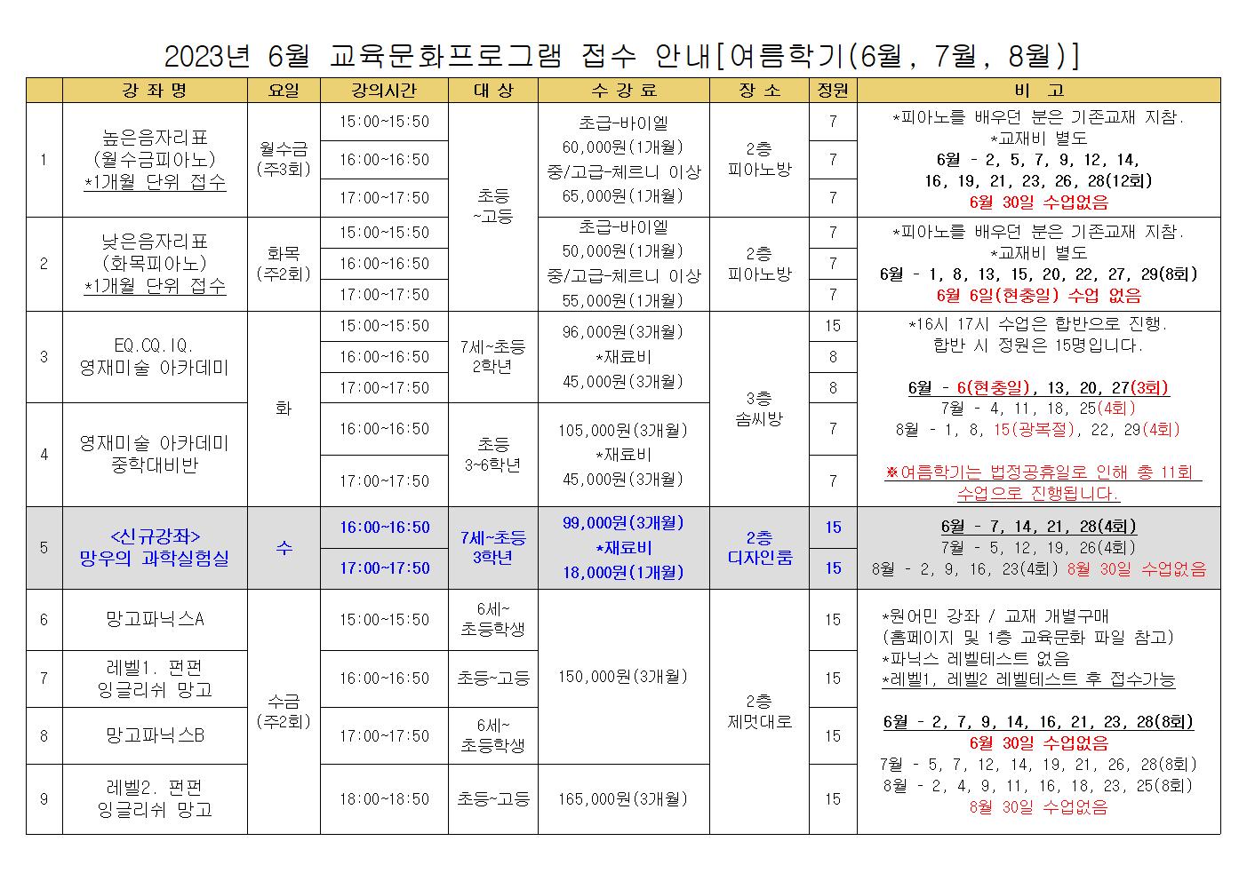 6¿ù 15ÀÏ ÈÞ° ÈÄ 6¿ù 29ÀÏ Á¤»ó¼ö¾÷