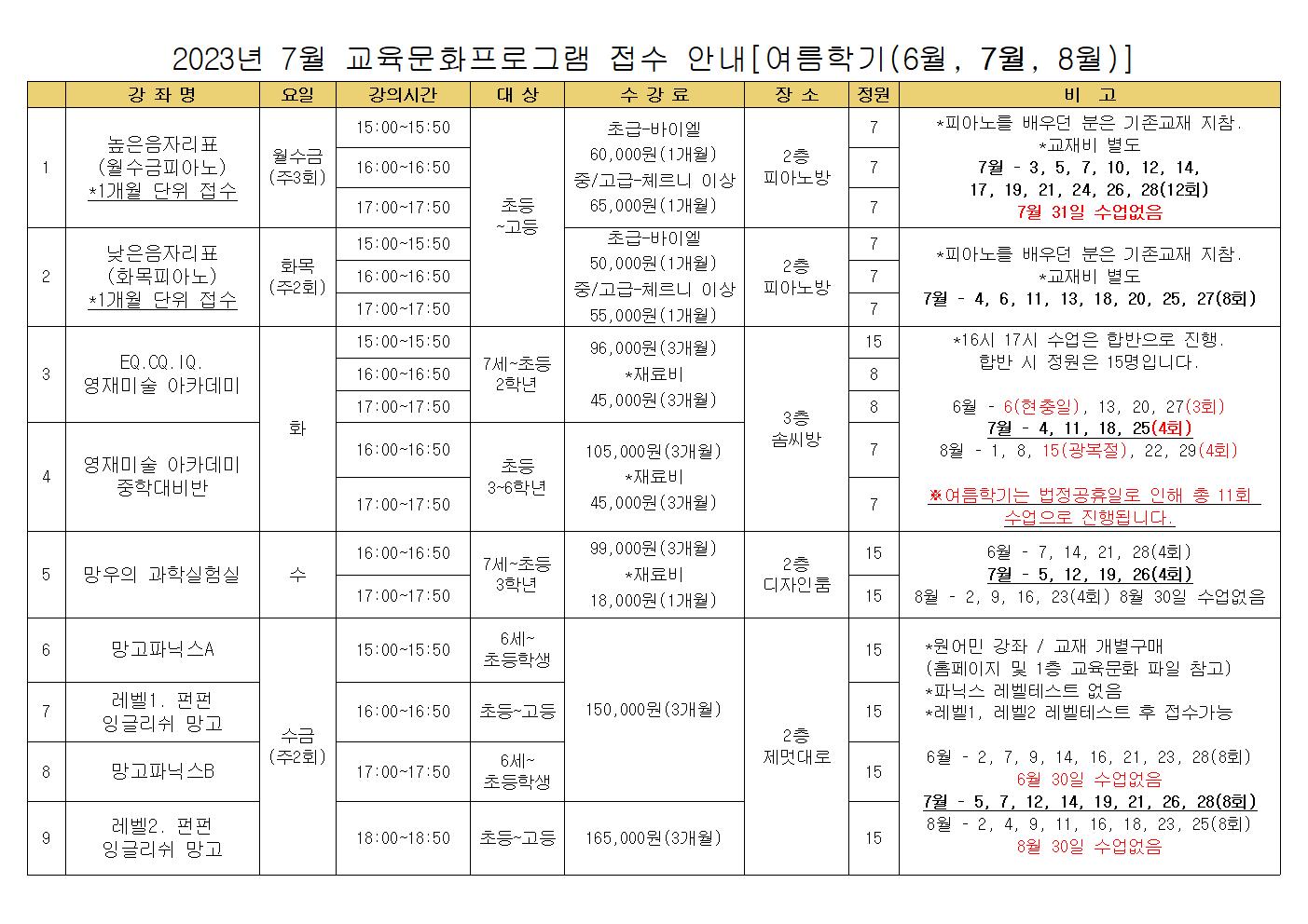 7¿ù ±³À°¹®È ÇÁ·Î±×·¥ ¾È³»(1)