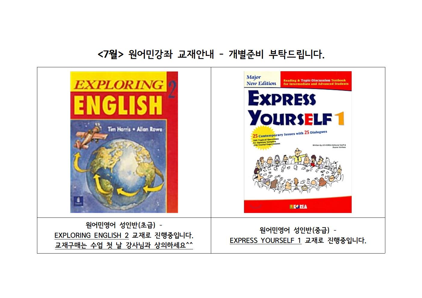¿ø¾î¹Î°Á ±³Àç¾È³» - 7¿ù(¼ºÀΰÁÂ)