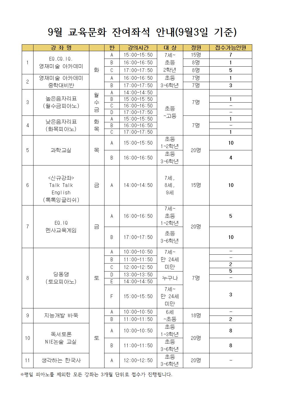 ±³À°¹®È 9¿ù ÀÜ¿©Á¼® ¾È³»(9¿ù3ÀÏ ±âÁØ)