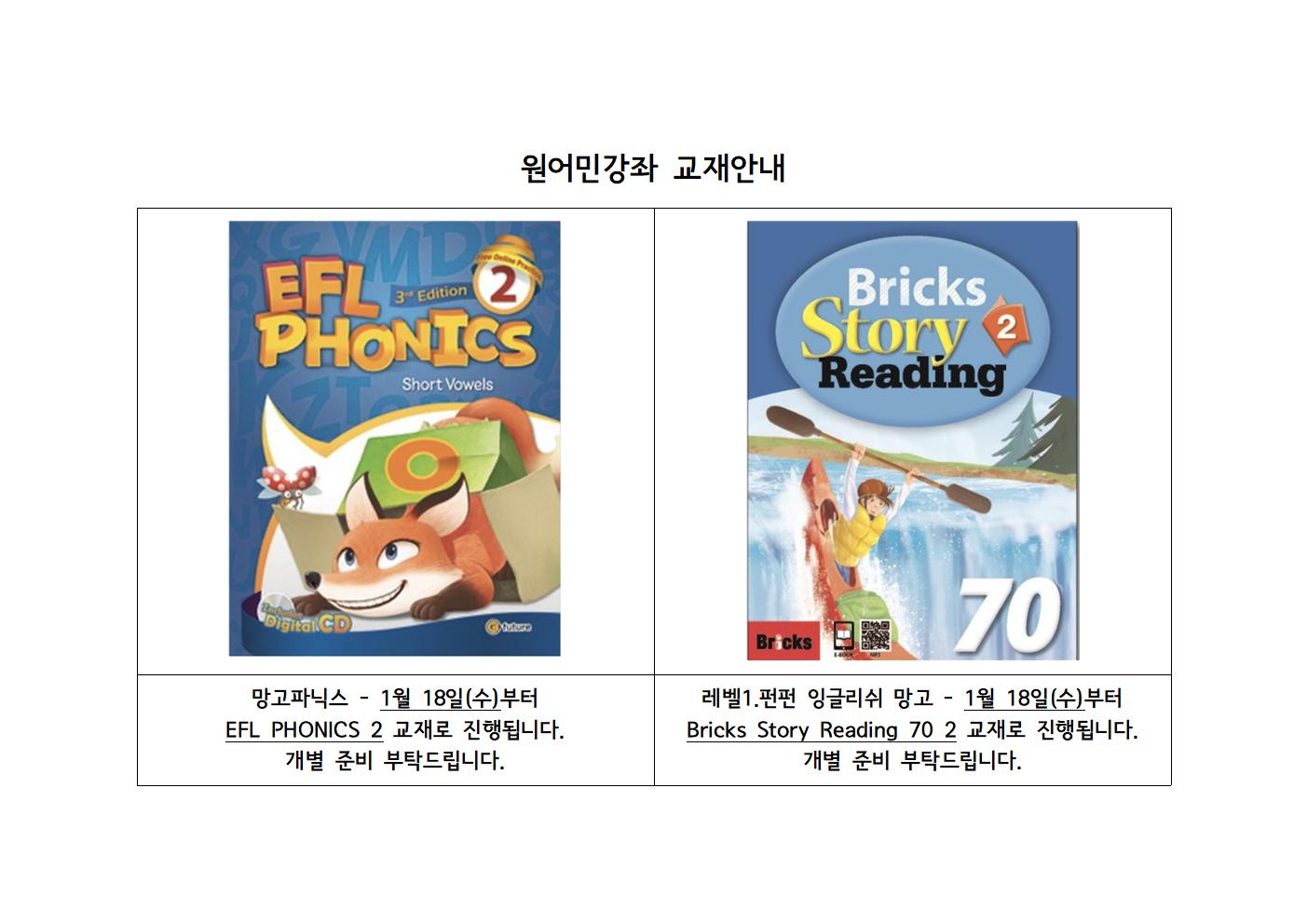 ±³À°¹®È-¿ø¾î¹Î¿µ¾î ±³Àç¾È³»(1¿ù18ÀϺÎÅÍ)