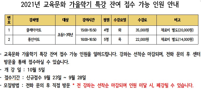2021³â ±³À°¹®È °¡À»ÇÐ±â Æ¯° ÀÜ¿© Á¢¼ö°¡´É Àοø ¾È³»