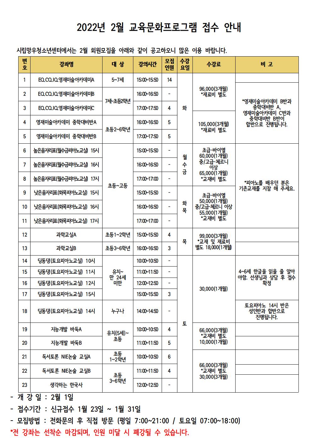 2022³â 2¿ù ±³À°¹®È ÇÁ·Î±×·¥ ÀÜ¿©Á¼® Á¢¼ö¾È³»