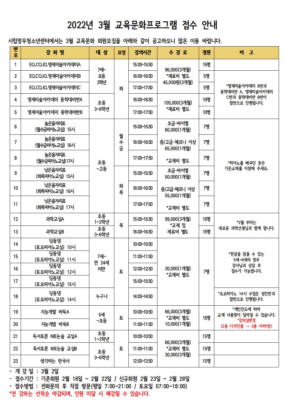 2022³â 3¿ù ±³À°¹®È ÇÁ·Î±×·¥ Á¢¼ö¾È³»(16ÀÏ ¼öÁ¤)
