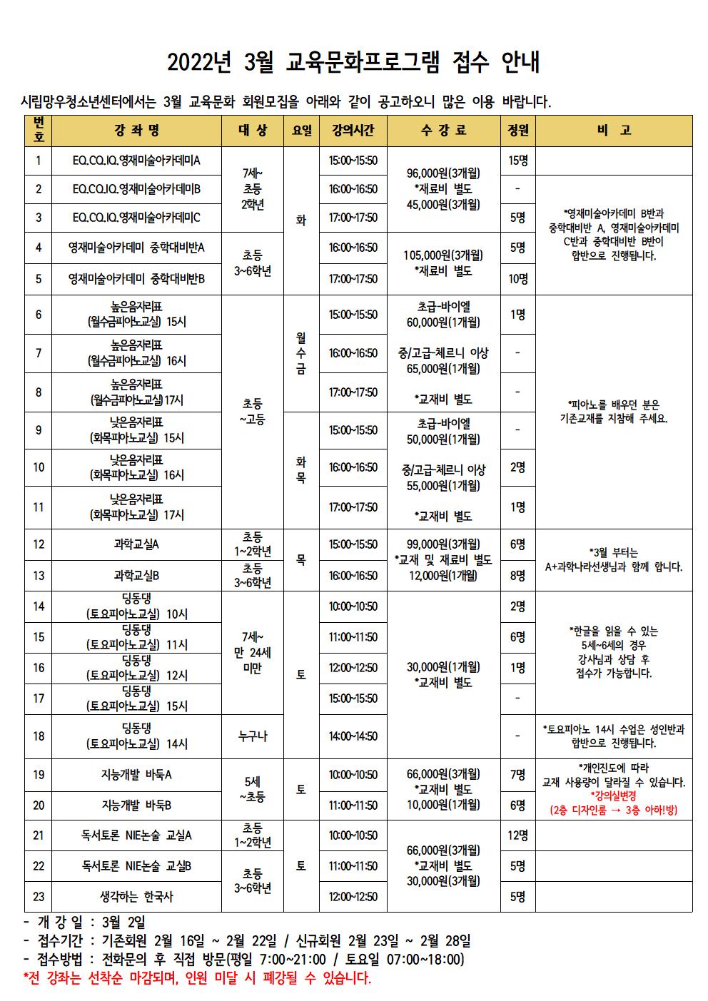 2022³â 3¿ù ±³À°¹®È ÇÁ·Î±×·¥ ÀÜ¿©Á¼® Á¢¼ö¾È³»