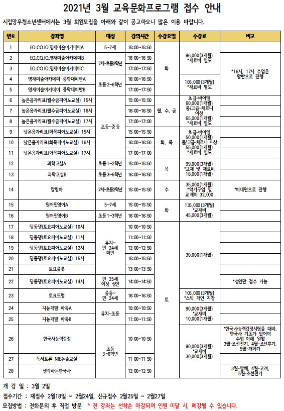2021³â 3¿ù ±³À°¹®È ÇÁ·Î±×·¥(Çʵ¶!!)