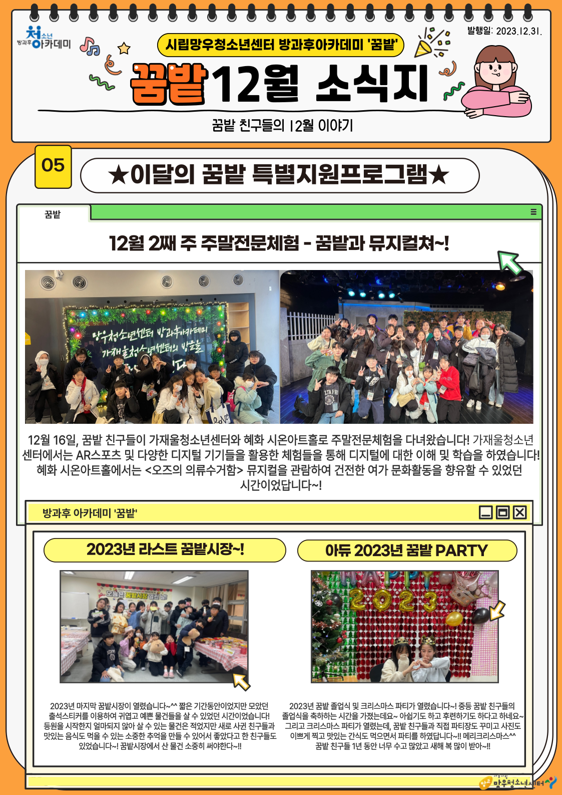 12¿ù ²Þ¹ç¾ÆÄ«µ¥¹Ì¿¡¼´Â ÇÑ ÇØ¸¦ ¸¶¹«¸®ÇÏ´Â ´Ù¾çÇÑ È°µ¿µéÀÌ ÁøÇàµÇ¾ú´Âµ¥¿ä~!!