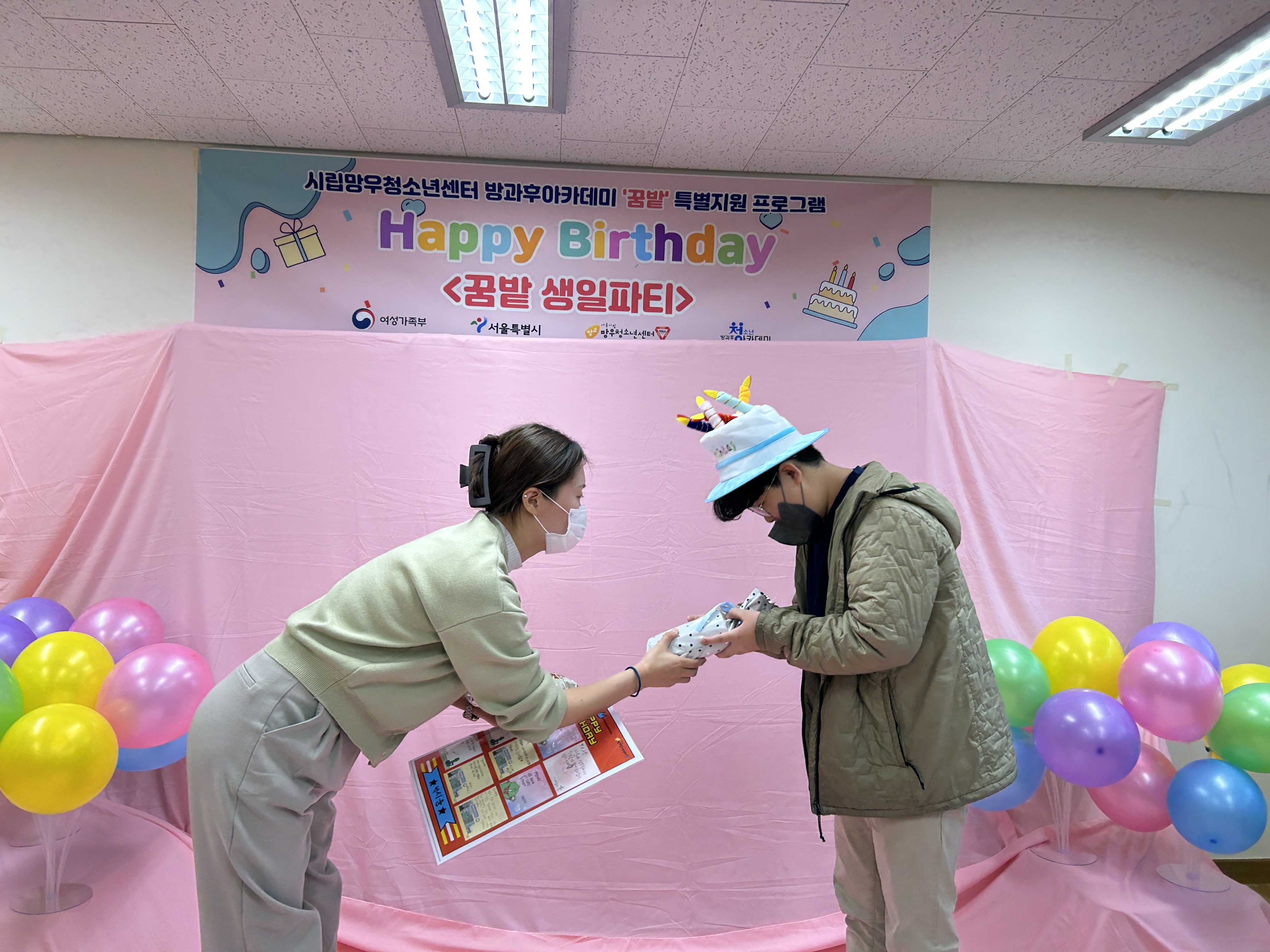 »ýÀÏÀ» ¸ÂÀº û¼Ò³âµéÀº Ä£±¸µéÀÌ ½áÁØ ·Ñ¸µÆäÀÌÆÛ¿Í ²Þ¹ç¾ÆÄ«µ¥¹Ì°¡ ÁغñÇÑ ¼±¹°À» ¹Þ°í ÇÔ¹Ú¿ôÀ½À» Áö¾ú´ä´Ï´Ù 😊