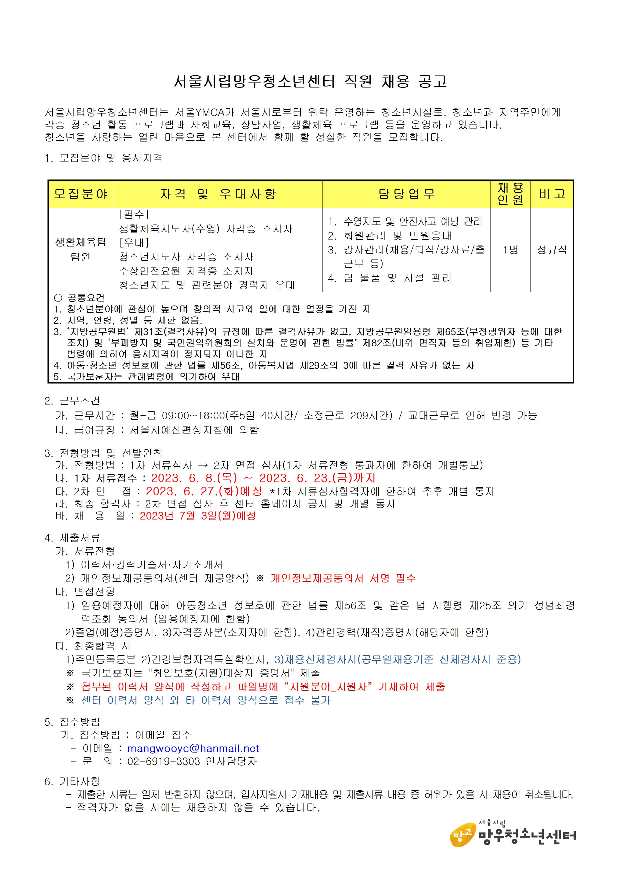 ½Ã¸³¸Á¿ìû¼Ò³â¼¾ÅÍ Á÷¿ø(»çȸ±³À°ÆÀ ÆÀ¿ø) ä¿ë °ø°í