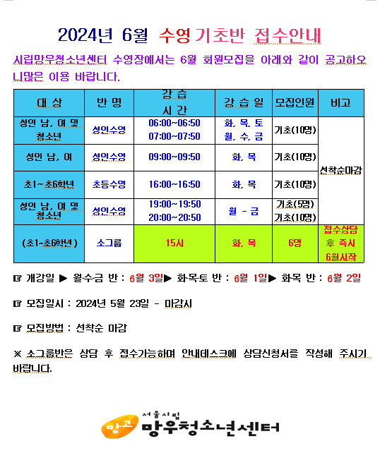 2024³â 6¿ù ¼ö¿µ ±âÃÊ¹Ý Á¢¼ö¾È³»