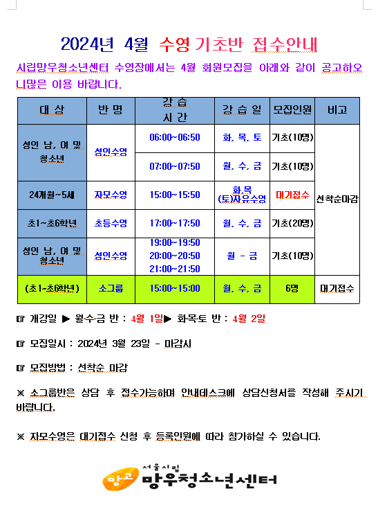 2024³â 3¿ù ¼ö¿µ ±âÃÊ¹Ý Á¢¼ö¾È³»