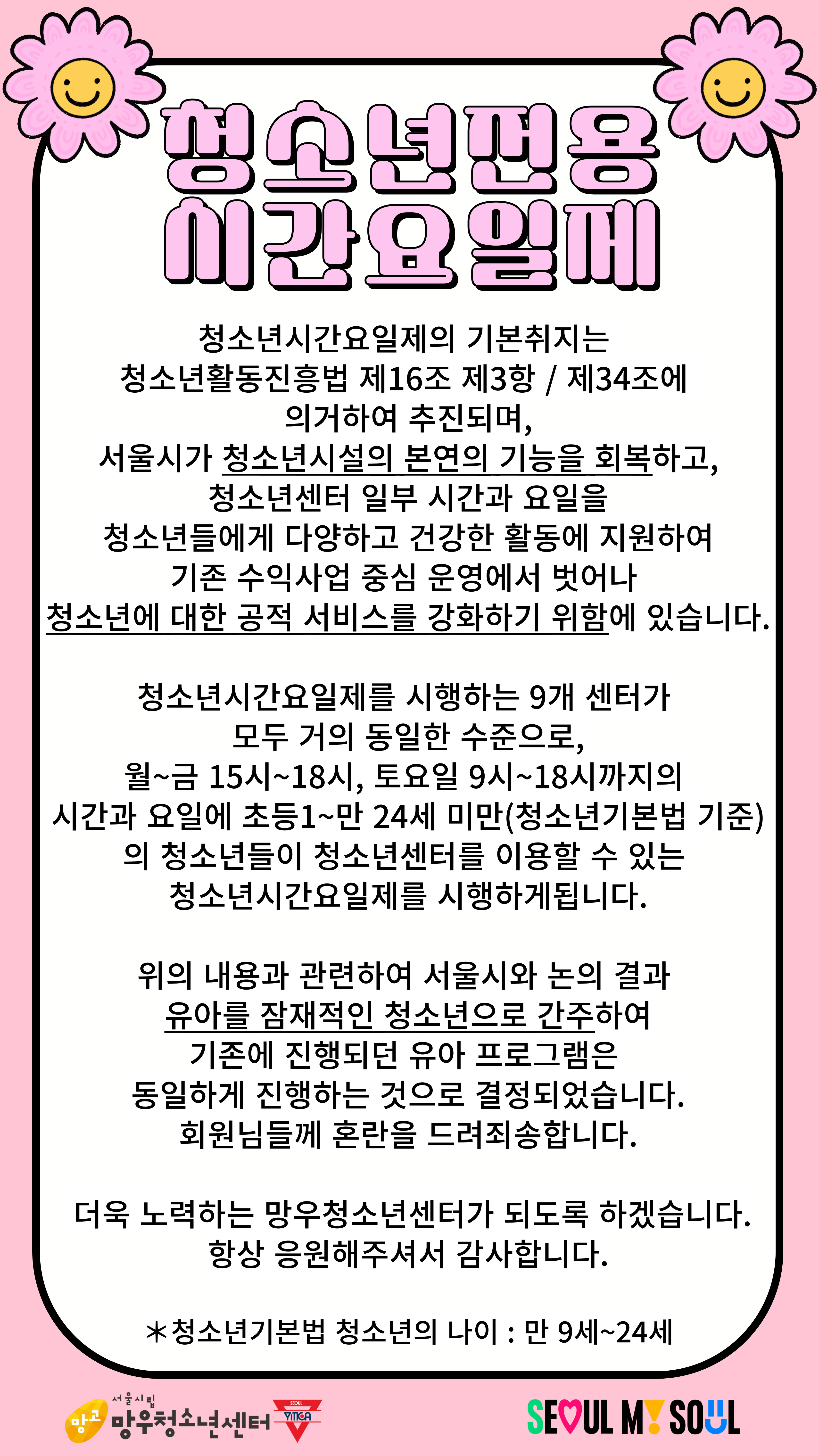 û¼Ò³âÀü¿ë½Ã°£¿äÀÏÁ¦ ¿î¿µ¿¡ µû¸¥ À¯¾Æ´ë»ó °Á º¯°æ³»¿ë ¾È³»