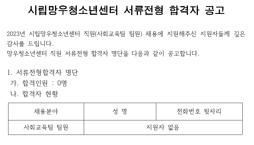 ½Ã¸³¸Á¿ìû¼Ò³â¼¾ÅÍ Á÷¿ø ±ä±Þä¿ë °ø°í ¼·ùÀüÇü ÇÕ°ÝÀÚ °ø°í