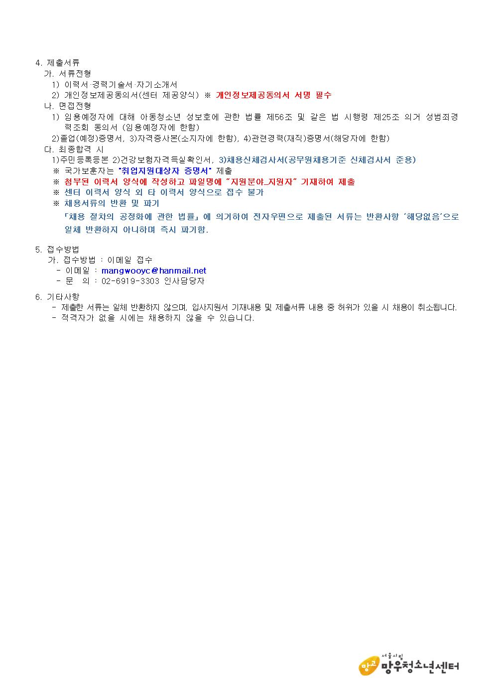 ½Ã¸³¸Á¿ìû¼Ò³â¼¾ÅÍ Á÷¿ø(»çȸ±³À°ÆÀ ÆÀ¿ø, ¹æ°úÈľÆÄ«µ¥¹Ì ´ãÀÓ) ä¿ë °ø°í
