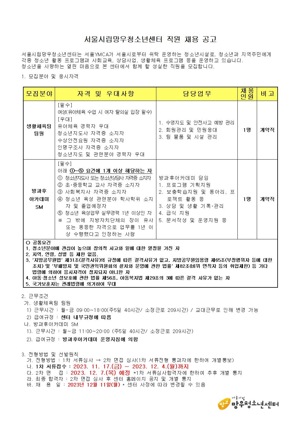 ½Ã¸³¸Á¿ìû¼Ò³â¼¾ÅÍ Á÷¿ø(»çȸ±³À°ÆÀ ÆÀ¿ø) ä¿ë ¼·ùÀüÇü ÇÕ°ÝÀÚ °ø°í