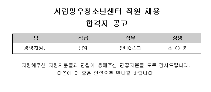 ½Ã¸³¸Á¿ìû¼Ò³â¼¾ÅÍ Á÷¿ø ä¿ë ÃÖÁ¾ ÇÕ°ÝÀÚ °ø°í