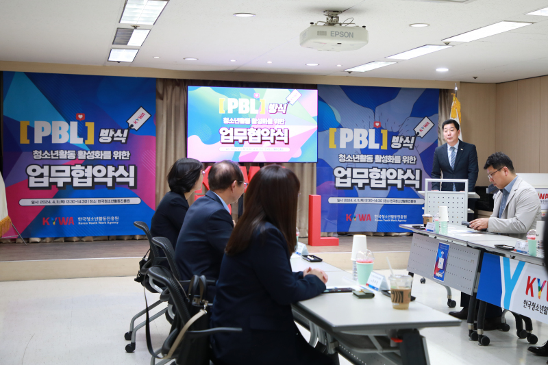 Áö³ 4¿ù 11ÀÏ Çѱ¹Ã»¼Ò³âȰµ¿ÁøÈï¿ø º»¿ø¿¡¼ PBL¹æ½Ä û¼Ò³âȰµ¿ Ȱ¼ºÈ¸¦ À§ÇÑ ¾÷¹«Çù¾à½ÄÀÌ ÁøÇàµÇ¾ú½À´Ï´Ù!!