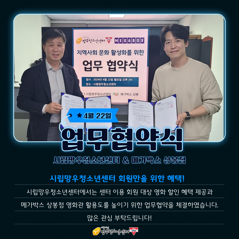 ½Ã¸³¸Á¿ìû¼Ò³â¼¾ÅÍ & ¸Þ°¡¹Ú½º »óºÀÁ¡ ¾÷¹«Çù¾à½Ä