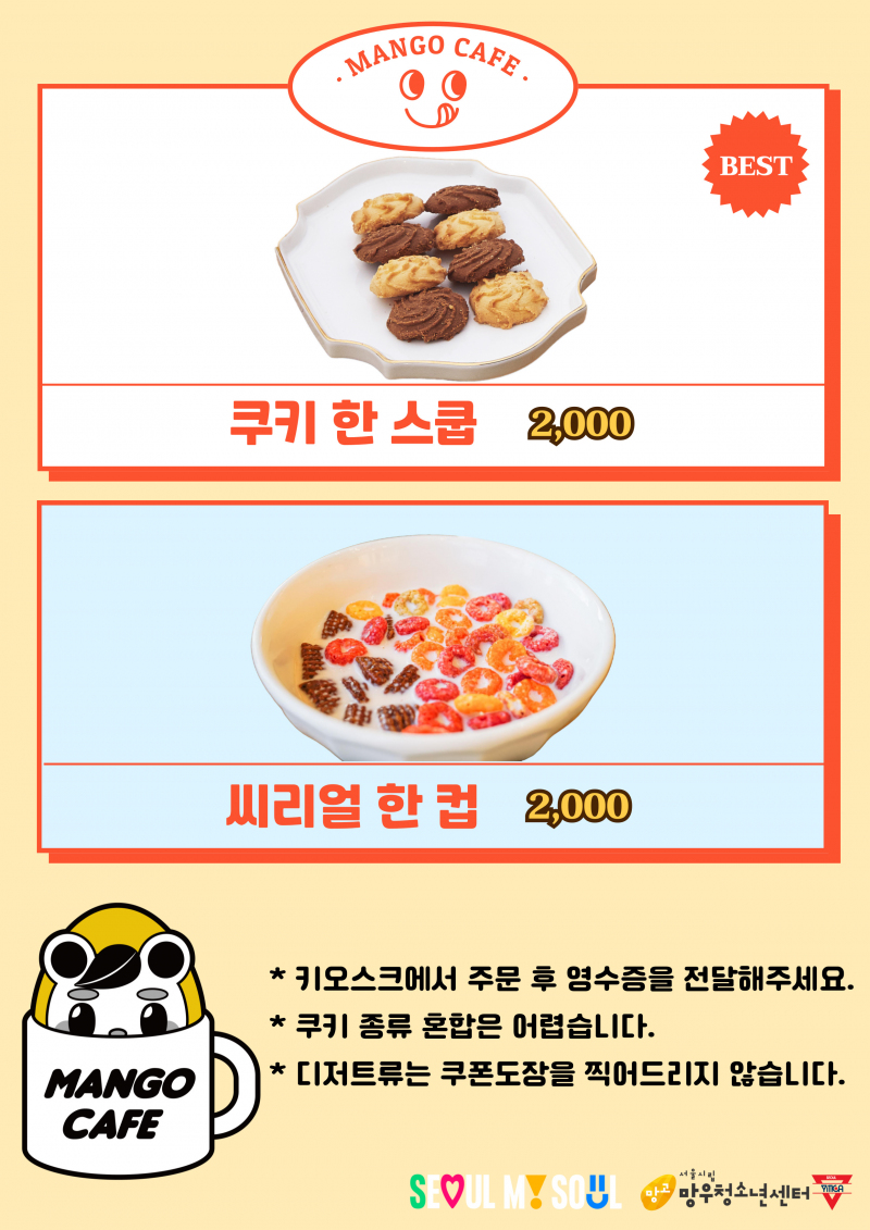 ¸Á¿ìû¼Ò³â¼¾ÅÍ 1Ãþ¿¡ À§Ä¡ÇÑ ¸Á°ícafe¿¡¼ ½Ã¸®¾ó ¹× ÄíŰ ÆÇ¸Å¸¦ ½ÃÀÛÇÕ´Ï´Ù🎉🎉 ºÀÅõ °¡µæ ´ãÀº ÄíŰ 4Á¾ ½ºÄò¸¶Äϰú Çѳ¢¸¦ °£´ÜÇÏ°í µçµçÇÏ°Ô Ã¤¿ï ¼ö ÀÖ´Â ¾¾¸®¾ó±îÁö! ½Ã¿øÇÑ À½·á¿Í °£½Ä ¸ÔÀ¸¸ç º¸µå°ÔÀÓµµ Áñ±æ ¼ö ÀÖ´Ù´Â »ç½Ç ¾ÆÁ÷ ¸ð¸£´Â°Ç ¾Æ´Ï°ÚÁÒ? (˵ •̀ ᴗ - ˵ ) ✧