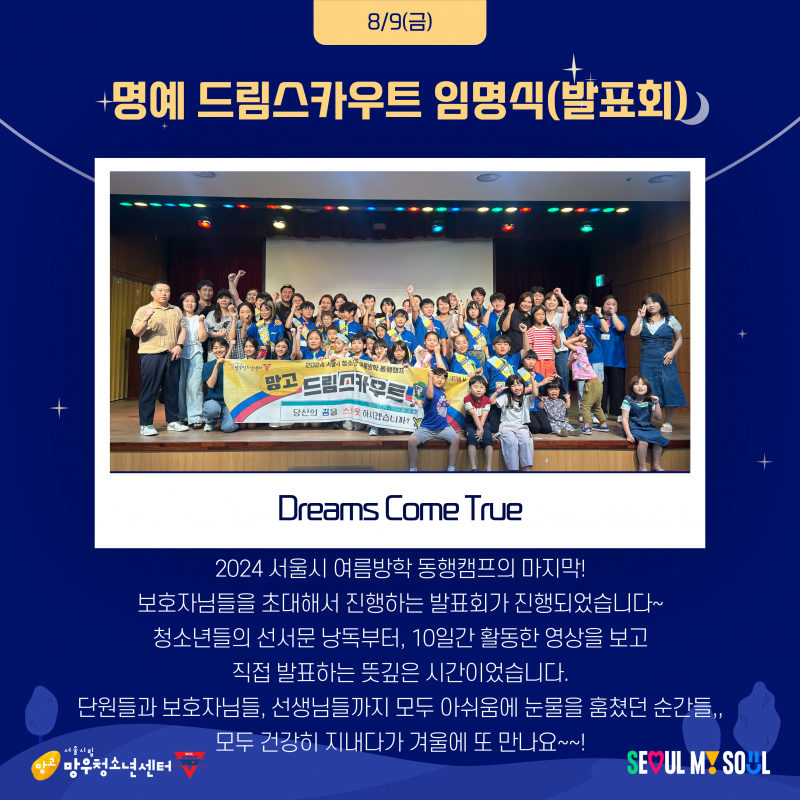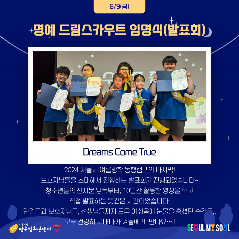 2024 ¼¿ï½Ã û¼Ò³â ¿©¸§¹æÇÐ µ¿ÇàÄ·ÇÁ <¸Á°íµå¸²½ºÄ«¿ìÆ®>°¡ ¼º°øÀûÀ¸·Î ¸¶¹«¸® µÇ¾ú½À´Ï´Ù!