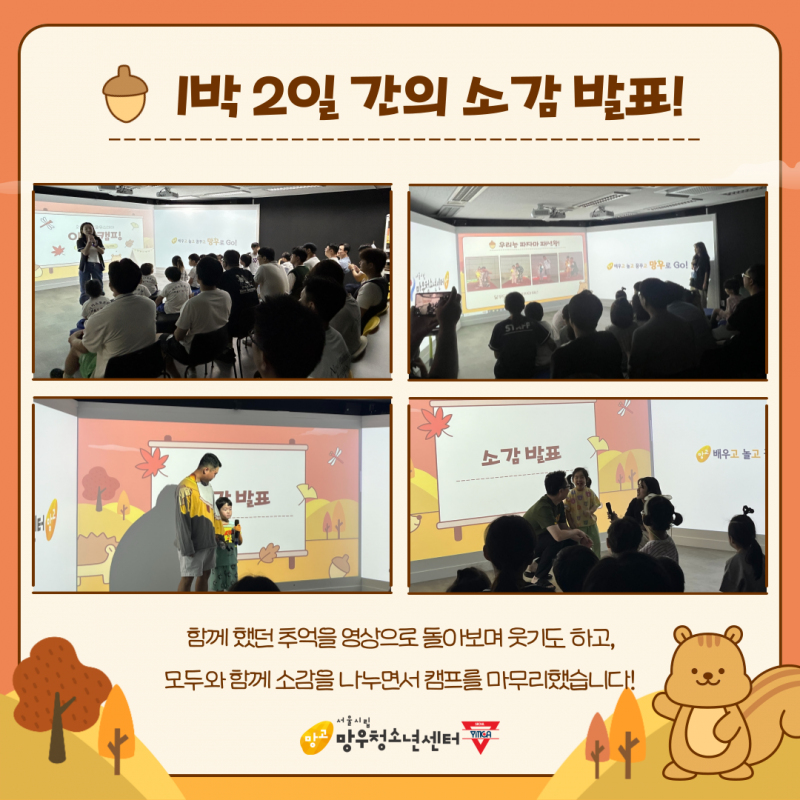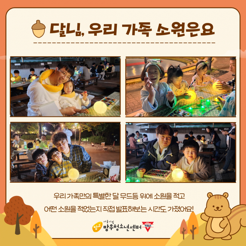 Áö³ 9¿ù 27ÀÏ~28ÀÏ¿¡ ¸Á¿ìû¼Ò³â¼¾ÅÍ¿¡¼´Â [¾Æºü¿Í ÇÔ²²Çϴ Ưº°ÇÑ Ä·ÇÁ]°¡ ÁøÇàµÇ¾ú½À´Ï´Ù ⍢
