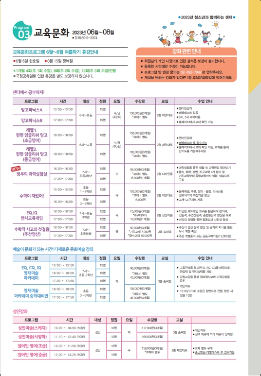 2023³â ¿©¸§Çбâ(6¿ù~8¿ù) ÇÁ·Î±×·¥Áö(PDFÆÄÀÏ Âü°í)